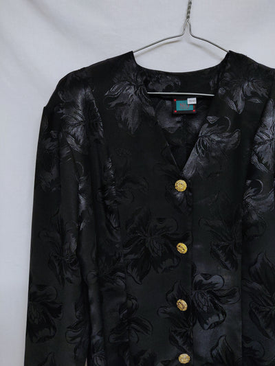 Shiny black flower blazer