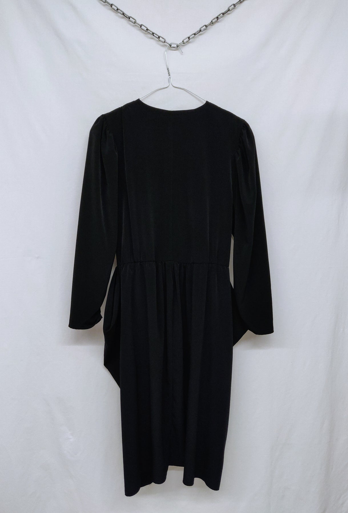 Flattering stylish black vintage dress with two beautiful golden buttons. Flexible waist, suits for many sizes. In very good condition. Made in Finland.