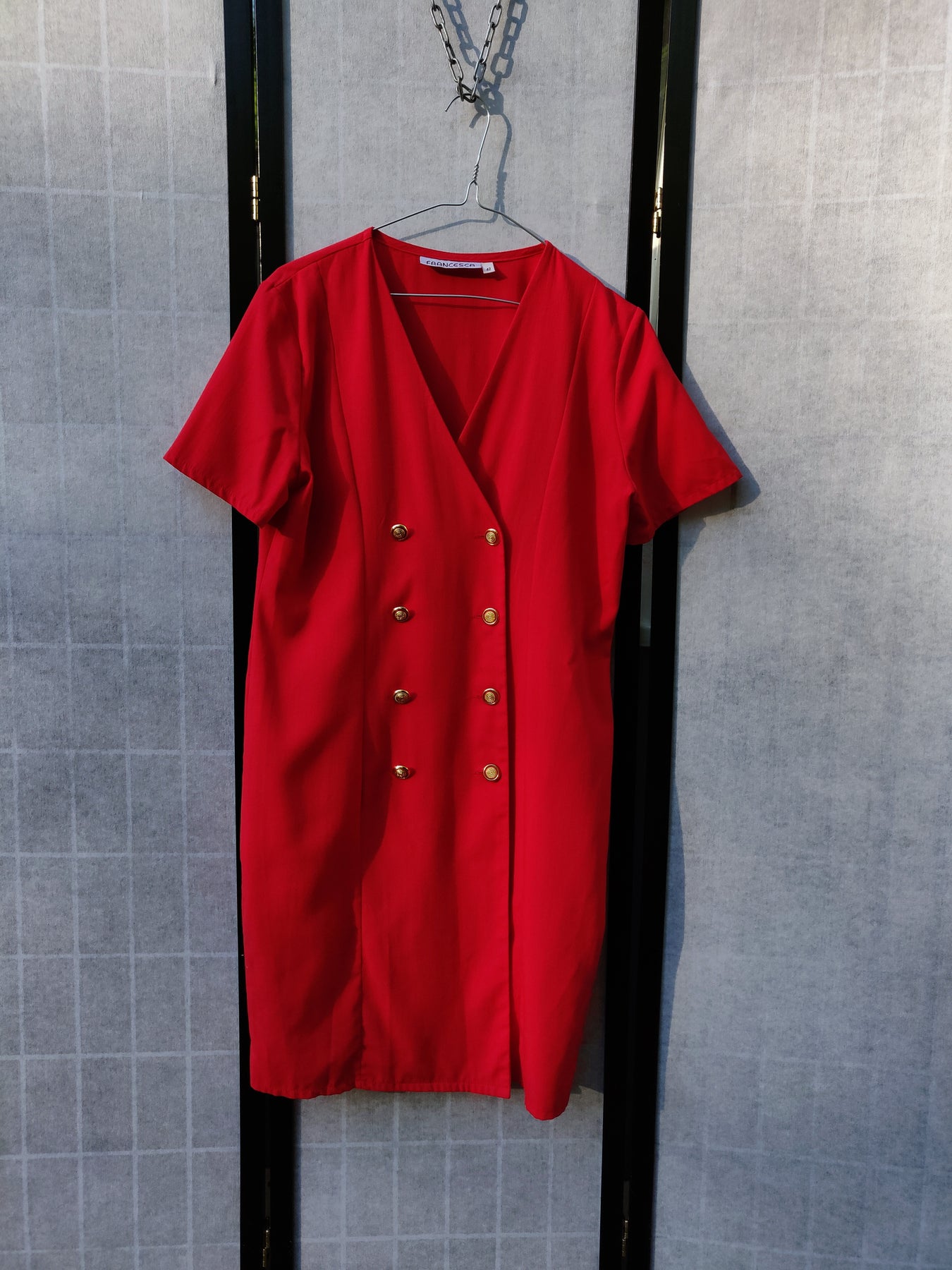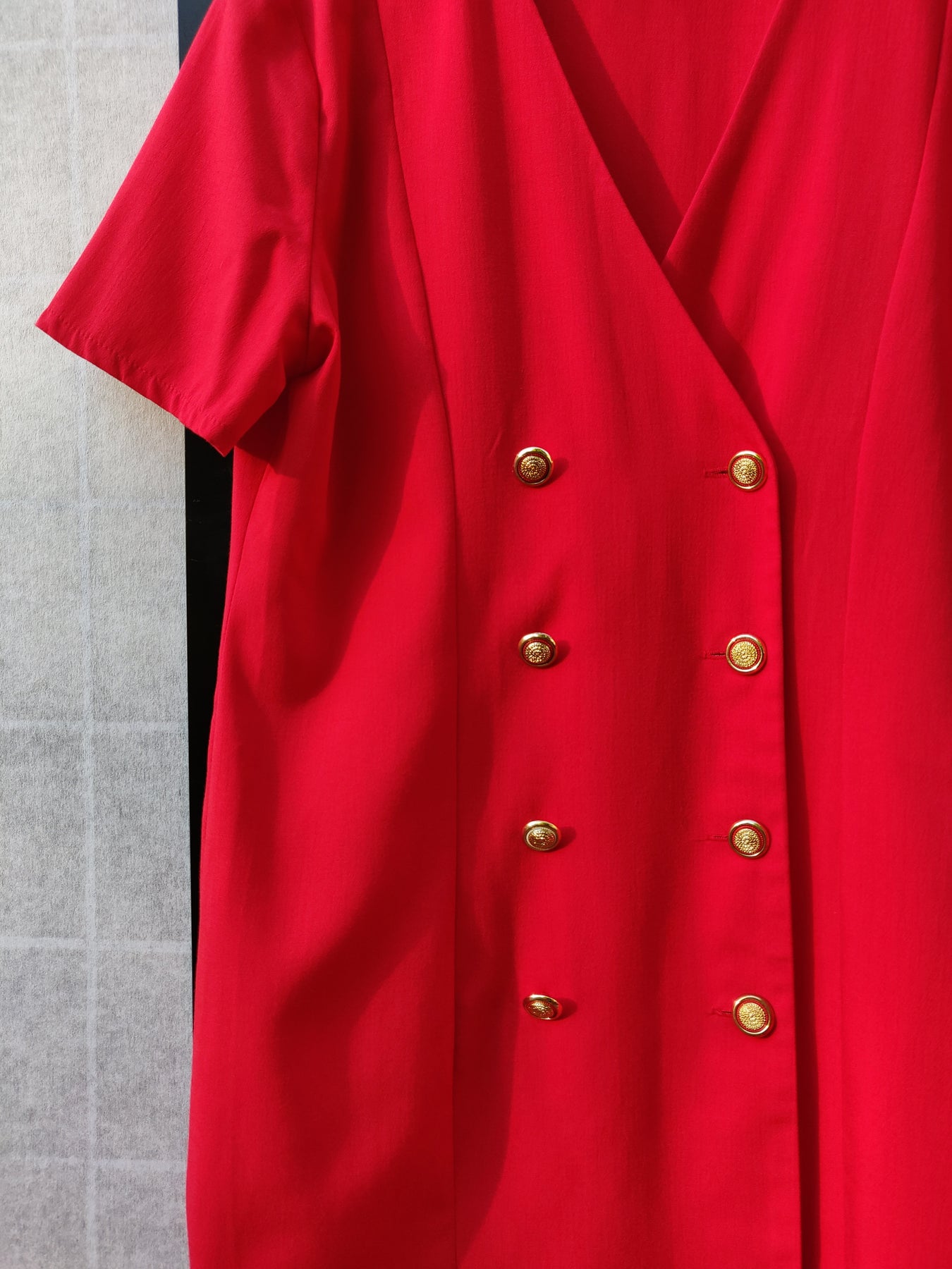 Elegant red colored blazer dress with beautiful golden buttons on the front. In a really good condition.