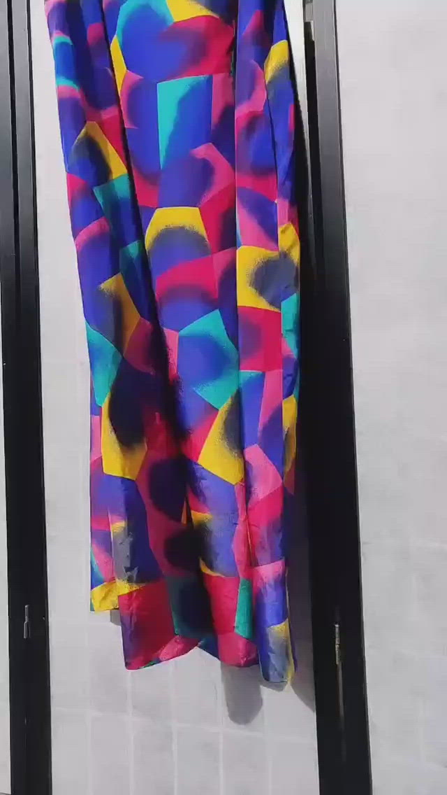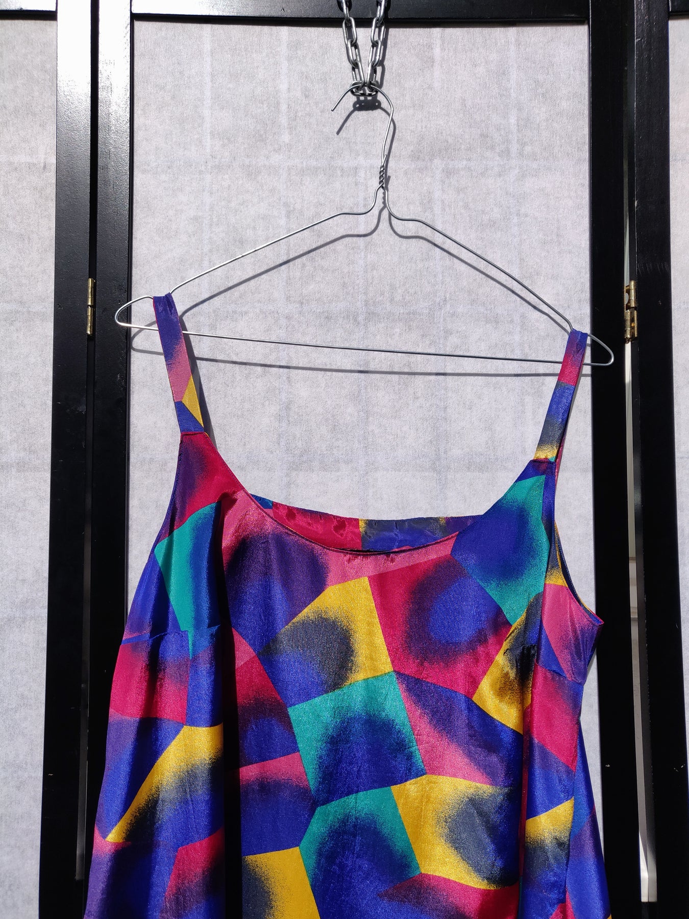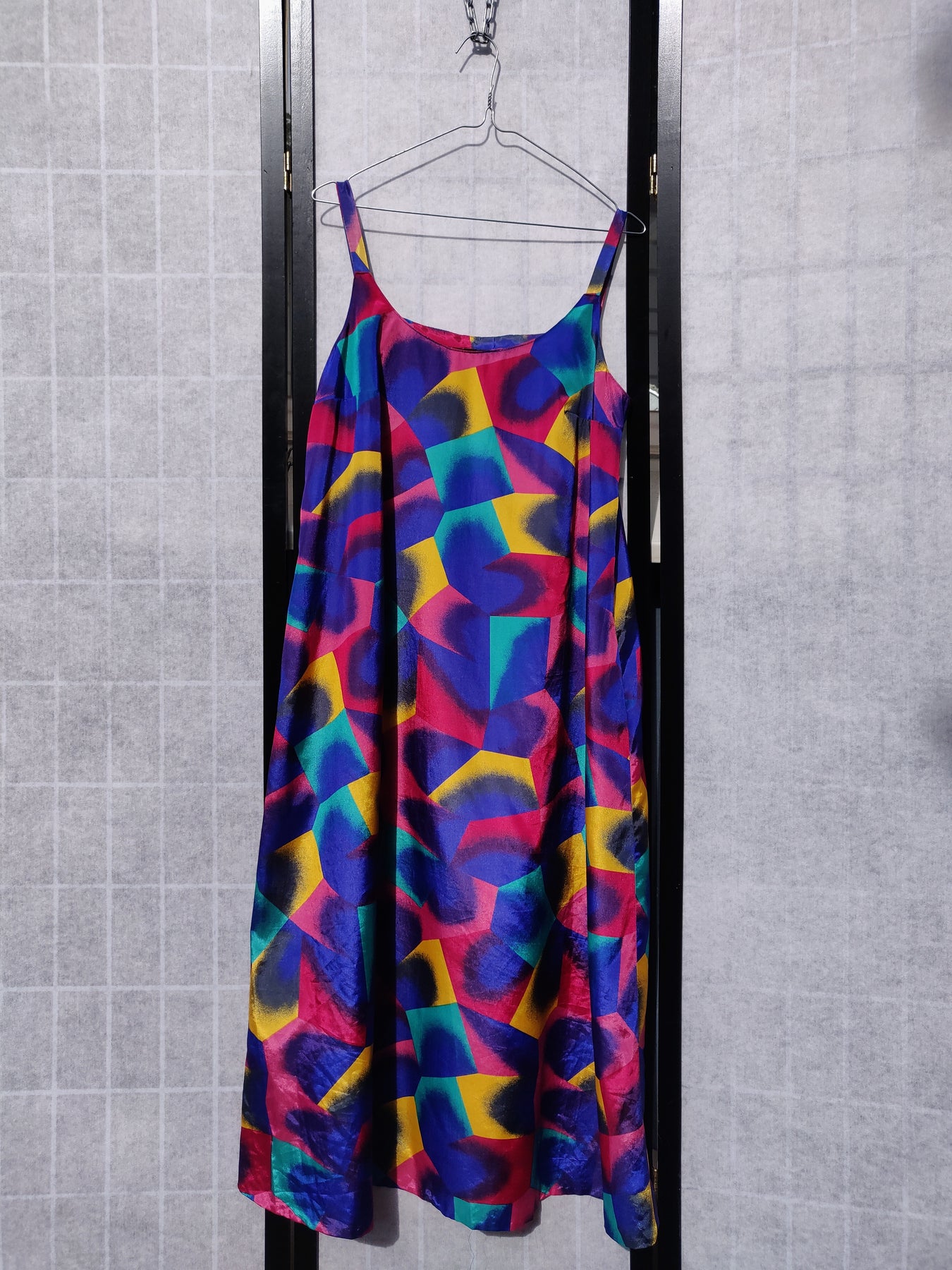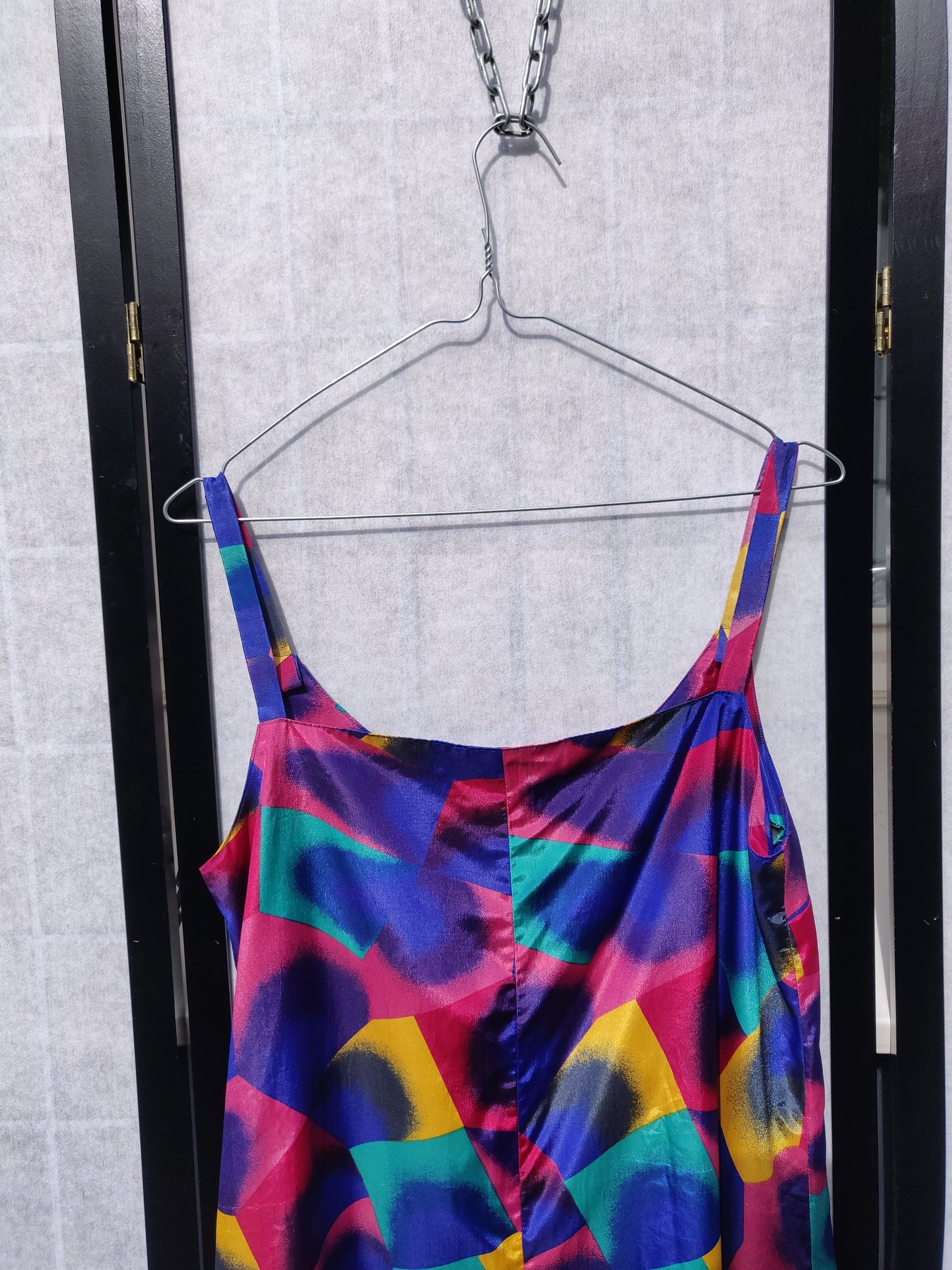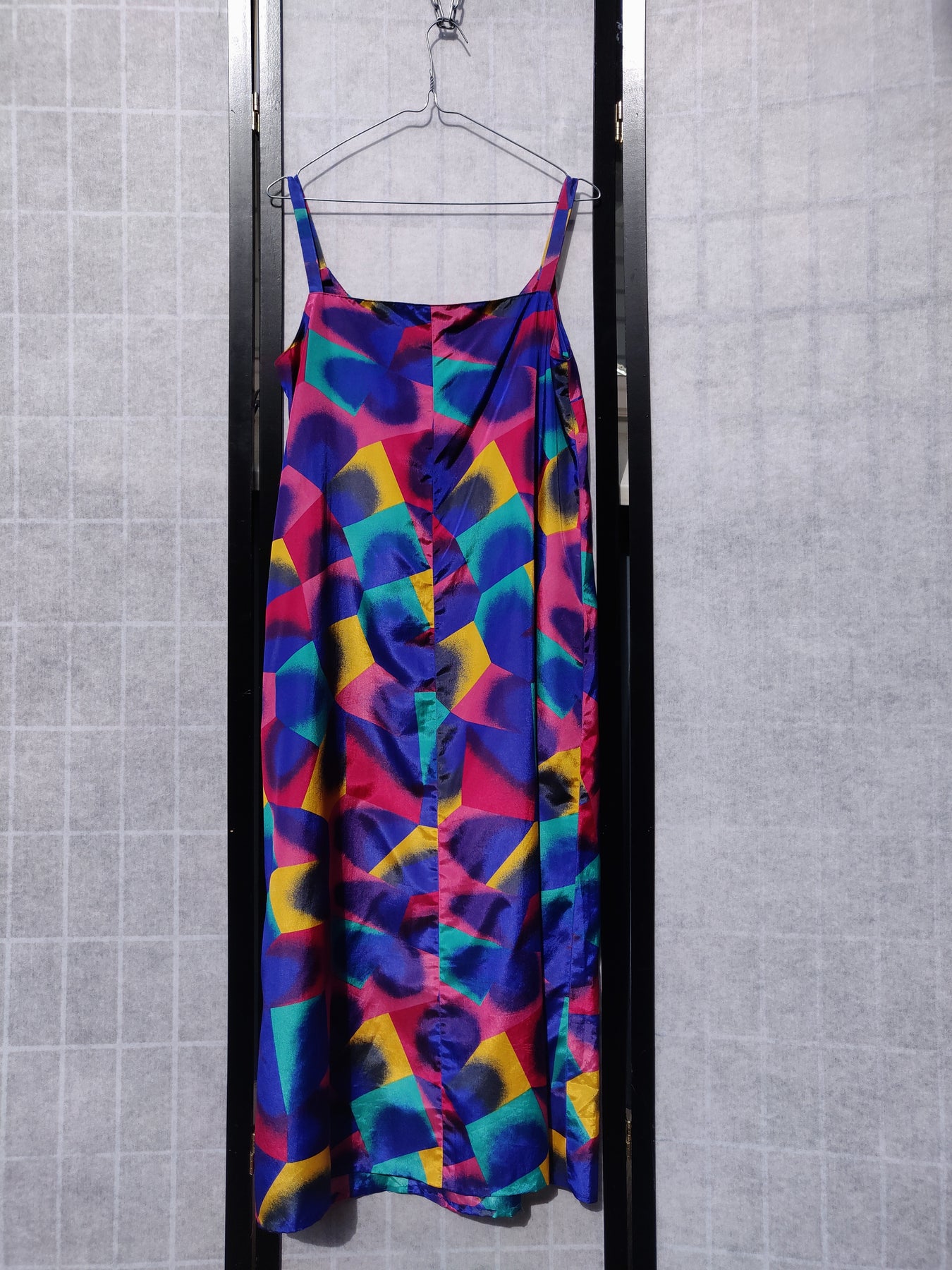 Beautiful colorful shiny dress with pockets on the sides. In really good condition.